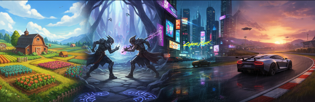 Casual / Indies / MMO lĂ©gers : pas mal de jeux 2D/3D simples, des MOBA, un AAA de temps en temps mais sans ĂȘtre obsĂ©dĂ© par lâUltra ou les 240 FPS.